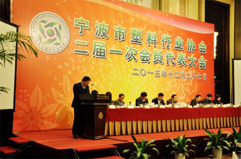 2013年12月27日,宁波市塑料行业协会二届一次会员代表大会(换届)暨五周年庆典晚会在宁波南苑饭店国际会议中心成功召开。中国轻工业联合会副会长兼中国塑料加工工业协会理事长钱桂敬、中国塑料加工工业协会常务副理事长曹俭、宁波市经济和信息化委员会副主任鲁章敖、浙江省塑料行业协会会长韩新伟等来自行政部门、行业协会、专家学者、新闻媒体的代表参加了会议。