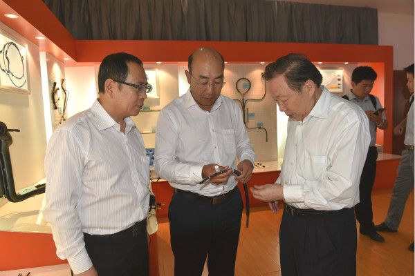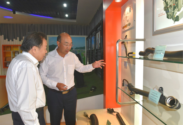 钱理事长一行参观了亚大塑料管材产品生产车间及产品检测中心,听取了李宏高总裁关于亚大集团发展历史、汽车管路系统和市政管路系统用塑料管材及管件产品、科技研发、重点项目建设及未来发展规划情况的介绍,还与亚大技术人员进行了交流。